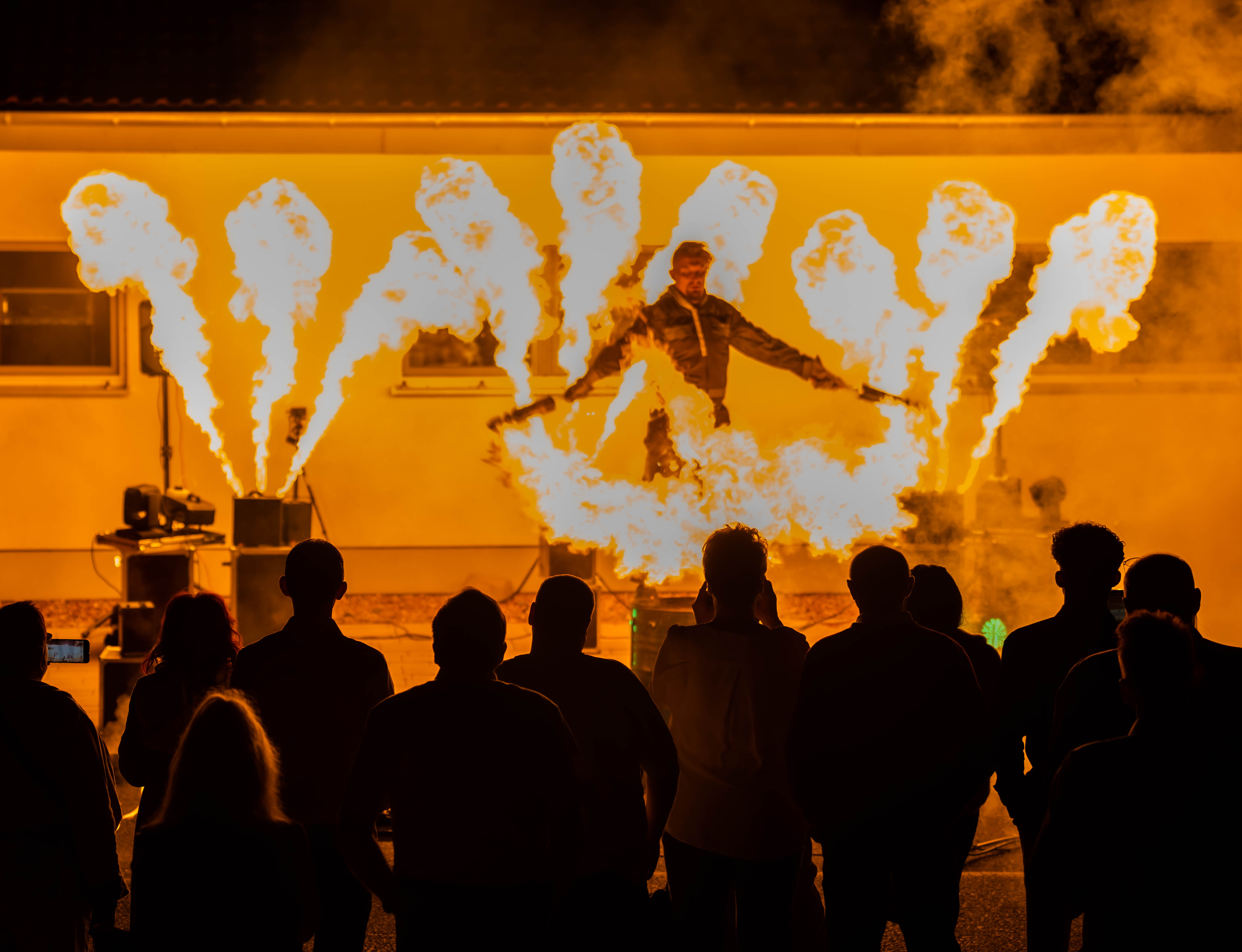 Für das Publikum wurde Industrial Fire zum emotionalen Höhepunkt des Abends. Die Gäste ließen sich von der Kombination aus Energie, Präzision und Leidenschaft mitreißen. Applaus, Begeisterung und leuchtende Gesichter spiegelten die Wirkung des Moments wider. Die Show schuf nicht nur Staunen, sondern auch Verbindung – genau das, was eine erfolgreiche Firmenfeier ausmacht: Teamgeist, gemeinsame Emotionen und bleibende Erinnerungen.