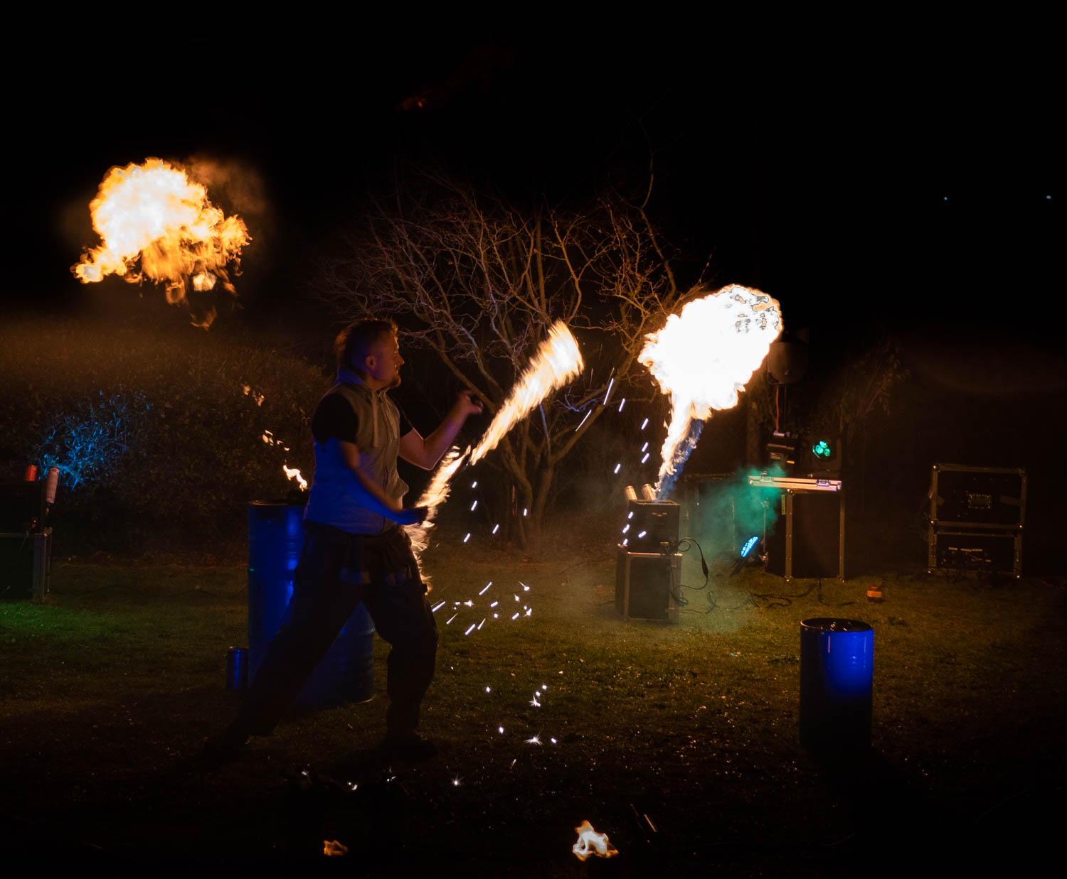 Ich hatte die Freude, die Weihnachtsfeier eines mittelständischen Unternehmens im Rhein-Main-Gebiet mit meinen Shows Light Up und Industrial Fire zu bereichern. Zwischen festlich geschmückten Buden und brennenden Feuerschalen entstand eine lebendige Bühne unter freiem Himmel. Trotz wechselhaften Wetters ließen sich die Gäste von Licht, Feuer und Funkenregen in den Bann ziehen.
